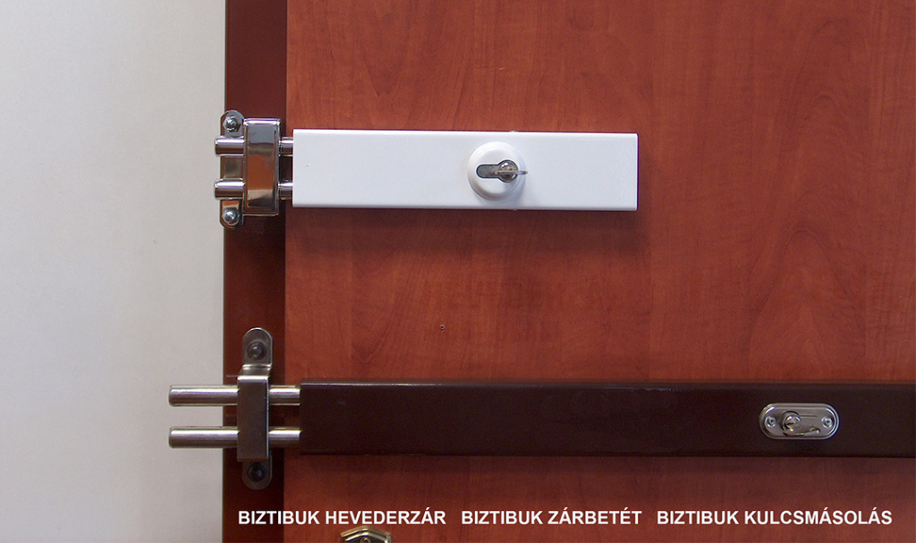 A BIZTIBUK-SP hevederzárat minden ajtó típusra ajánljuk: faajtó, műanyagajtó, kínai-lemezajtó/klikk videó itt látható elsődleges vagy másodlagos és kiegészítő zármegoldásként. Kitűnő megoldás egy már meglévő bevéső-zár kiegészítéseként. Hiszen könnyen belátható, hogy ahol a zár helyét kivésték, meggyengül a szerkezet és befeszíthetővé válik az ajtó.